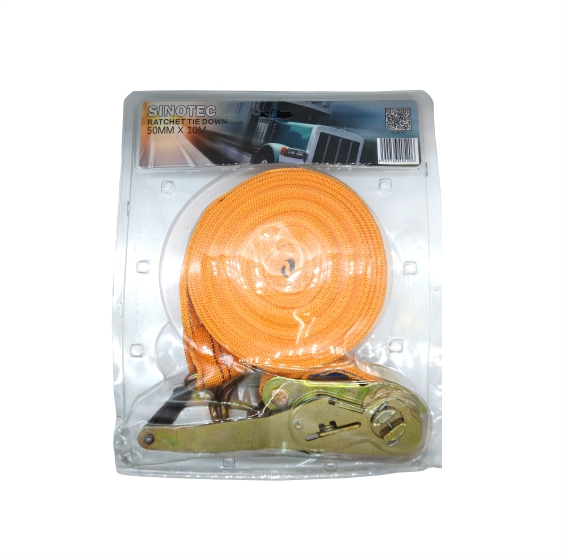 SPECIFICATION: Material of ratchet buckle : Carbon steel Material of webbing : Polyester Ratchet : 50mm Webbing : 50mm polyester Hooks : Double J hook or U-hook Size : 10meter Weight : 1.7kg